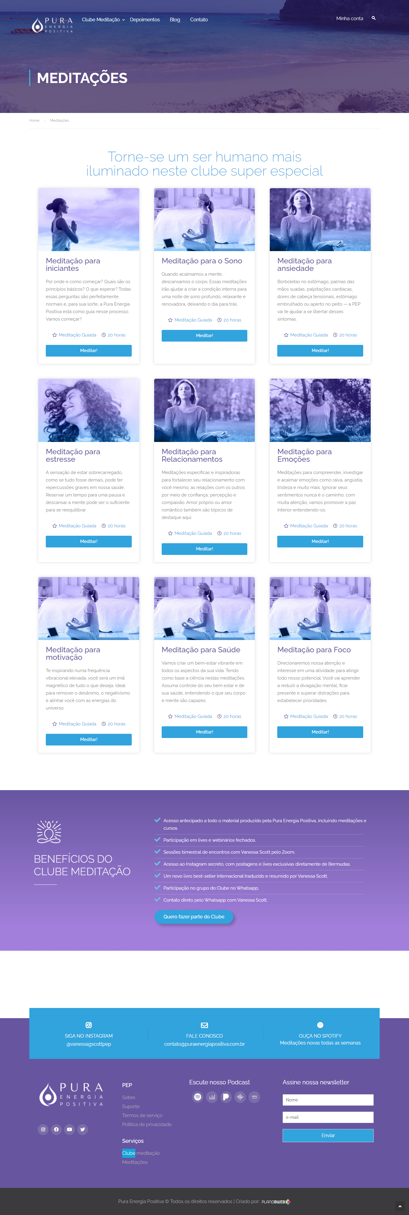 PÁGINA: MEDITAÇÕES - Exibição das categorias